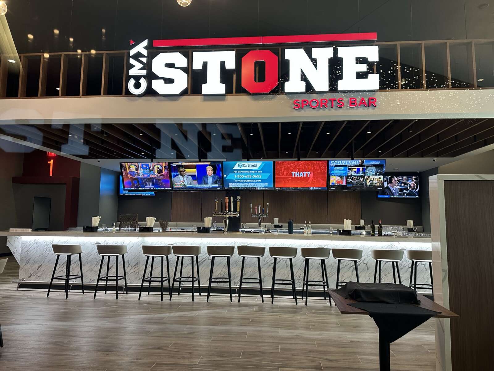 The 43,268-square-foot theater has over 800 reclining seats in eight screening rooms. Available in theaters and at the Stone Sports Bar in the lobby, the menu focuses on “rustic New American cuisine” prepared by formally trained chefs, CMX said in a press release.