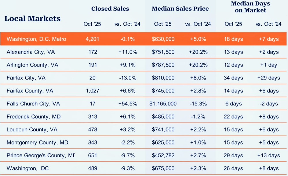 A total of 1,027 residential properties went to closing in October, according to figures reported Nov. 11 by Bright MLS, the region’s multiple-listing service. That’s up 6.6% from 963 sales in October 2024.