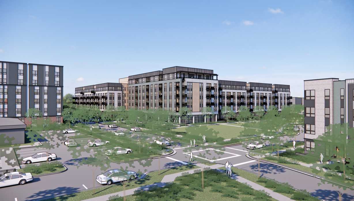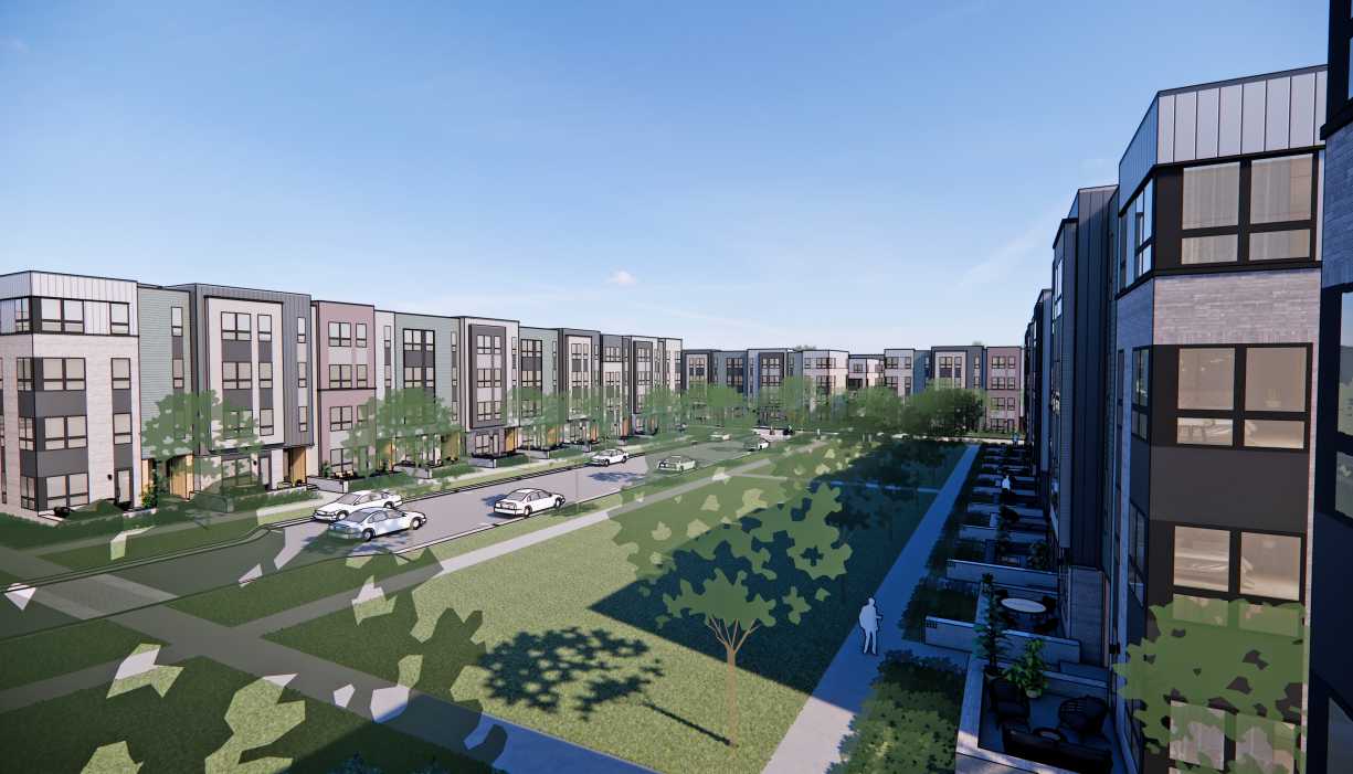 Peterson wants to replace the buildings with 420 multifamily apartments across two buildings and 286 stacked townhomes, including 140 units designated as affordable for those earning 60% of the area median income.