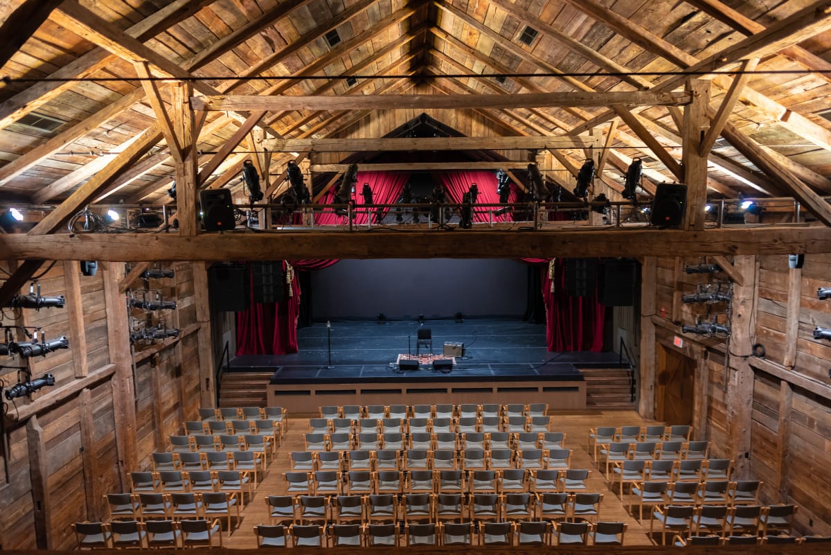 This year marks the 300th anniversary of construction of the German-style barn, which is used as the performance space. It was built in 1725 in Blenheim, New York, by Johan Peter Niskarn to house seven cows and two horses.