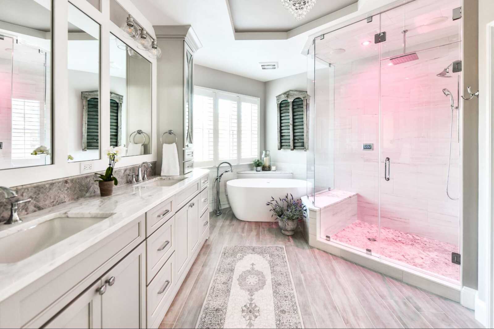 For homeowners drawn to a tranquil, spa-like environment, features such as rainfall showerheads, soaking tubs, natural materials, and greenery can enhance the experience. Aromatherapy elements, like essential oil diffusers or lightly scented linens, can add another layer of sensory comfort.