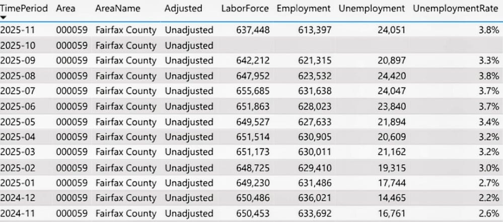 The November 2025 Northern Virginia unemployment rate of 3.7% was up from 2.6% a year before, according to the new figures.
