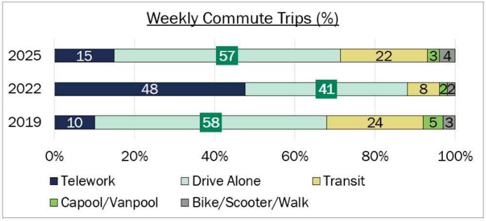 Still, while it hasn’t disappeared, telework is no longer the all-week-long norm for white-collar workers in the region, according to the 2025 State of the Commute report.