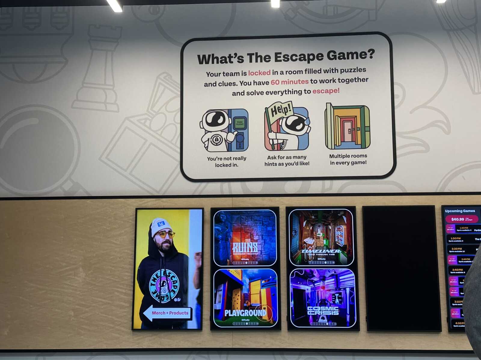 Players have 60 minutes to complete their chosen room, and the venue can accommodate up to 52 players at one time.