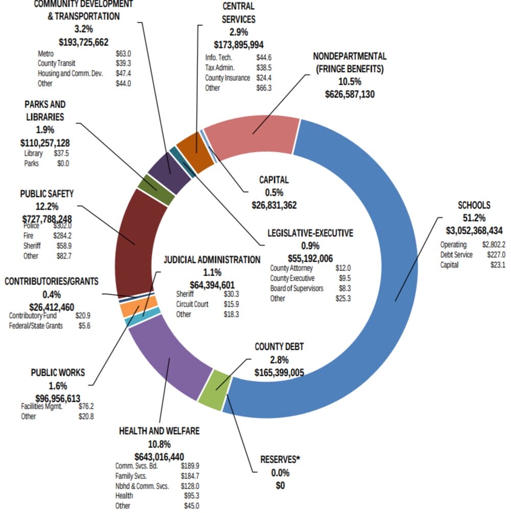 Hill included $23.2 million in unallocated funding in his advertised budget that the Board of Supervisors could use to address different priorities, such as tax relief, affordable housing, additional FCPS support or restoring proposed reductions.