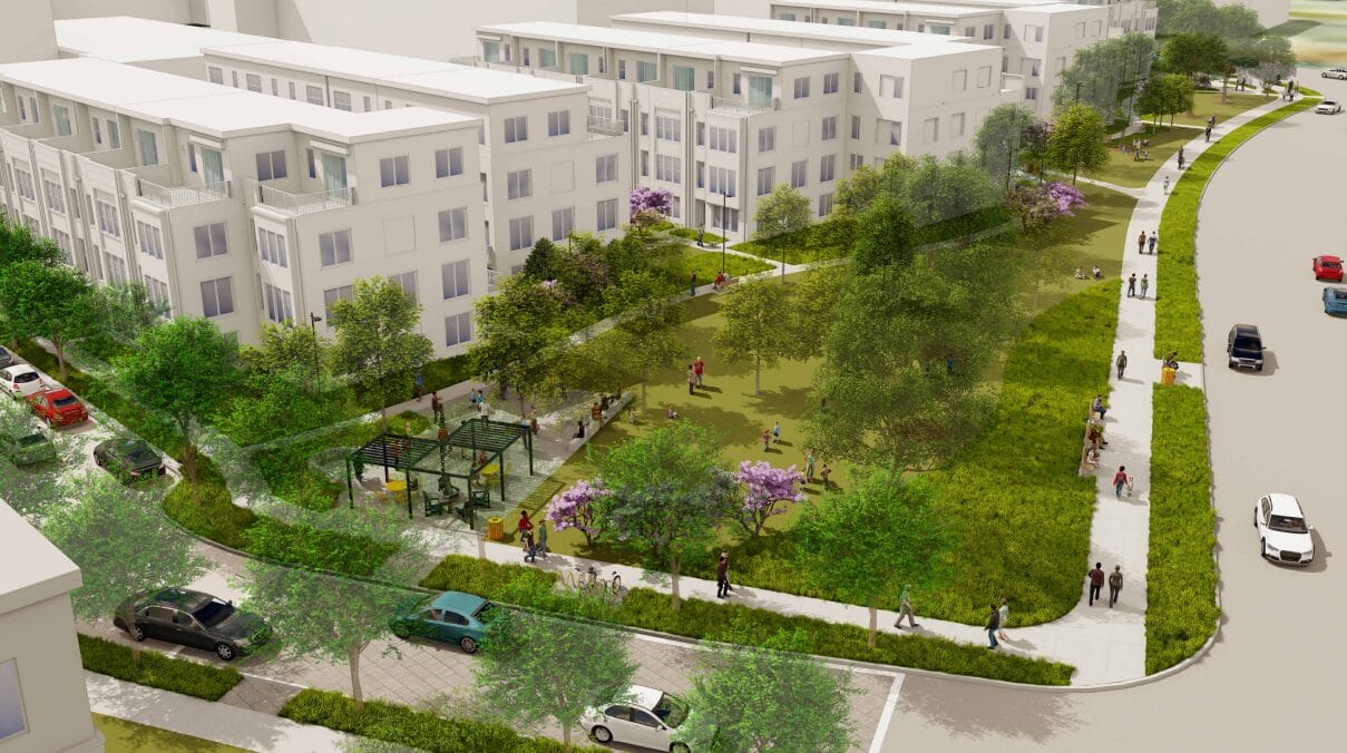 Replacing four industrial buildings on approximately 8.3 acres of land northeast of the Prosperity Avenue and Hilltop Road intersection, the initial homes would come with transportation improvements as well as park space, a clubhouse and other amenities for the future residents and the wider community.