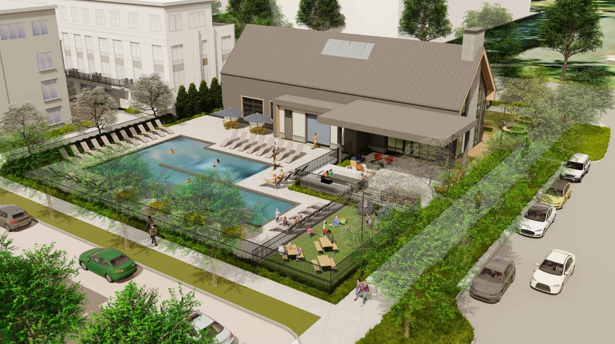 Residents would have access to a private, 3,200-square-foot clubhouse with an outdoor swimming pool and unspecified indoor amenities.