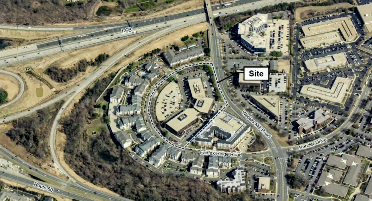 The parcel is bounded by Fairfax Ridge and Waples Mill roads, near the I-66 and Route 50 interchange just outside Fairfax City.
