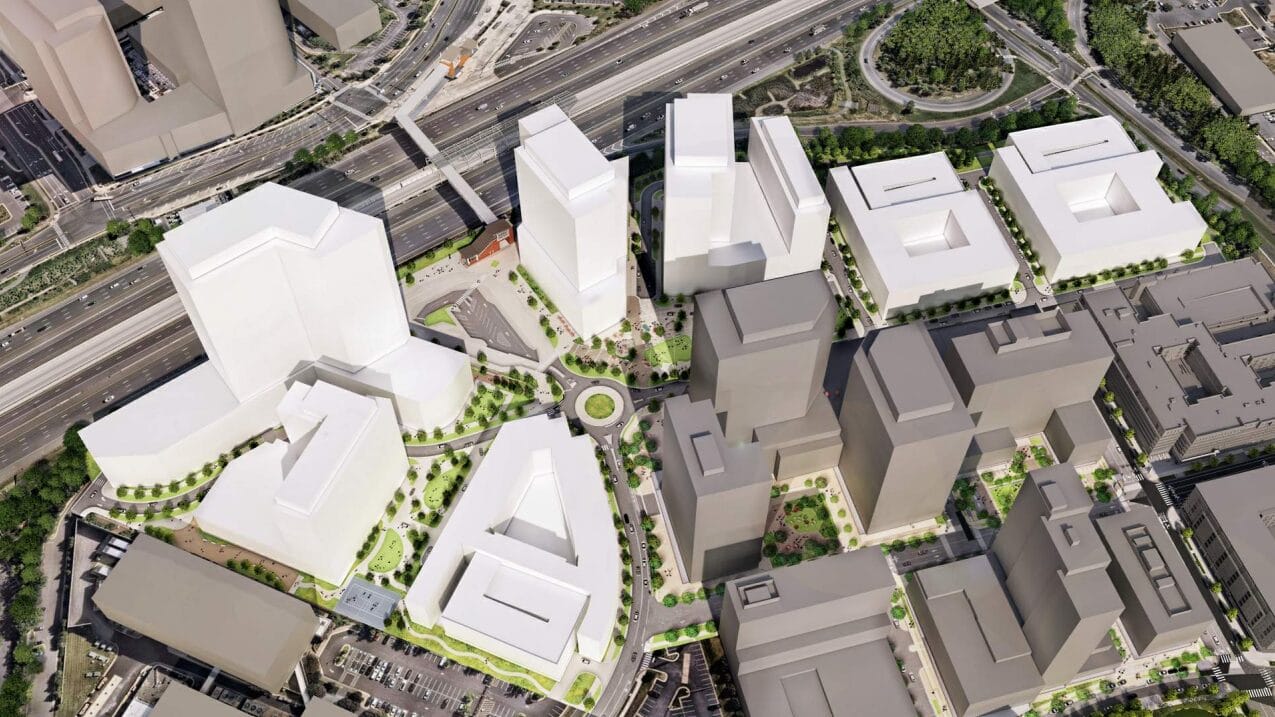 - Block F: office building with 625,000 square feet of space, including 5,000 square feet of retail, up to 425 feet tall