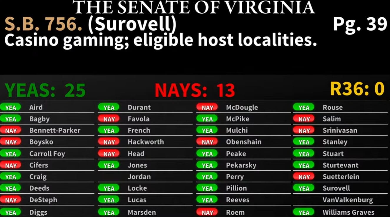After requesting a second conference to some groans from his colleagues, Senate Majority Leader Scott Surovell (D-34) reverted to his original language for a new substitute bill to allow casino gaming in Fairfax County, limiting potential sites to a 1.5-million-square-foot mixed-use development in Tysons but otherwise treating Fairfax the same as the five cities in Virginia already eligible to host a casino.