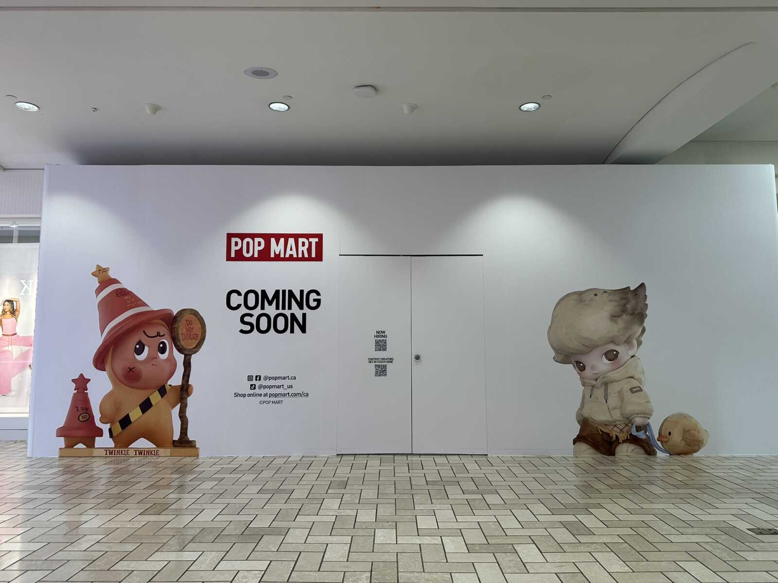 Now, a construction wall announcing that Pop Mart is “coming soon” has popped up around its future storefront on the mall’s first floor near GameStop and Wasabi. Though an opening isn’t imminent, it could come in time for Christmas shopping.