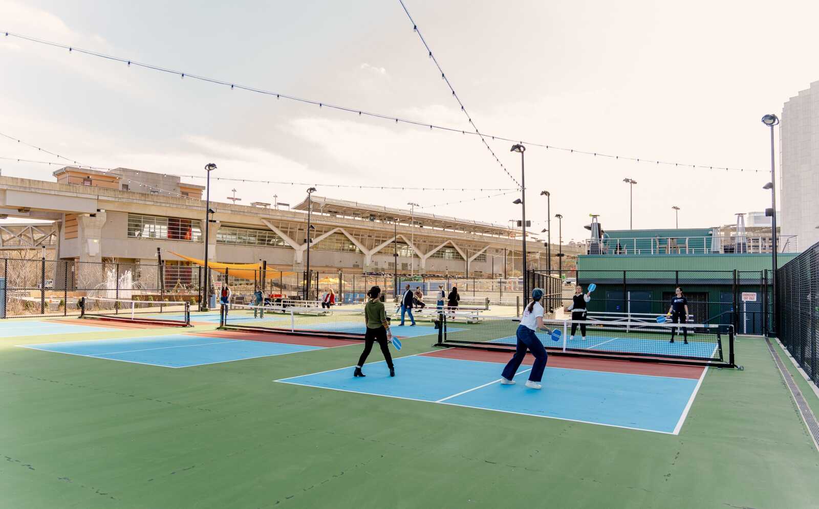 According to a Capital One Center spokesperson, the courts are free to play, and walk-ups are allowed, but the developer recommends booking a time slot in advance through Court Reserve. Groups looking to reserve the courts for a private event or tournament can do so by emailing reservations@capitalonecenter.com.