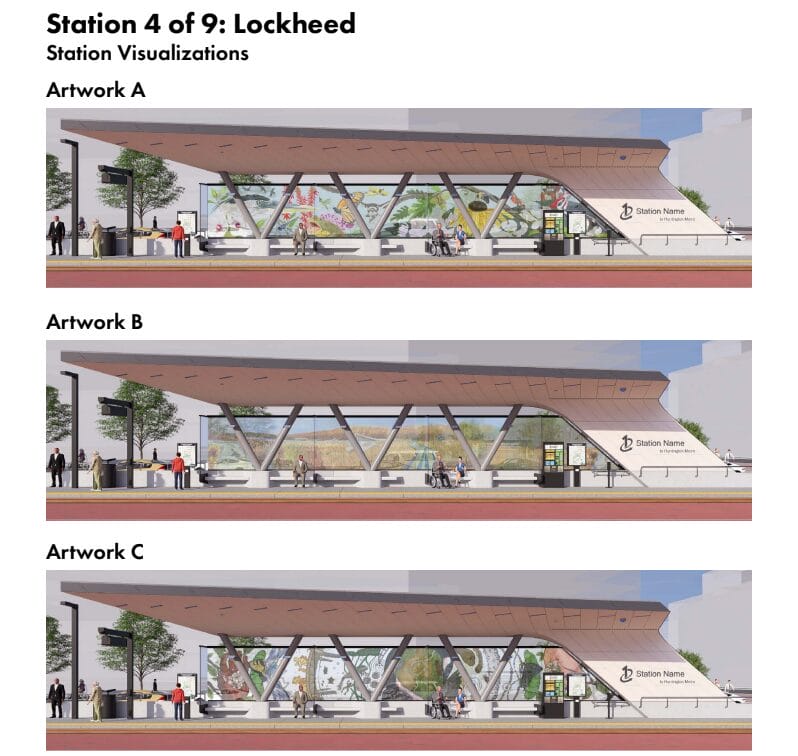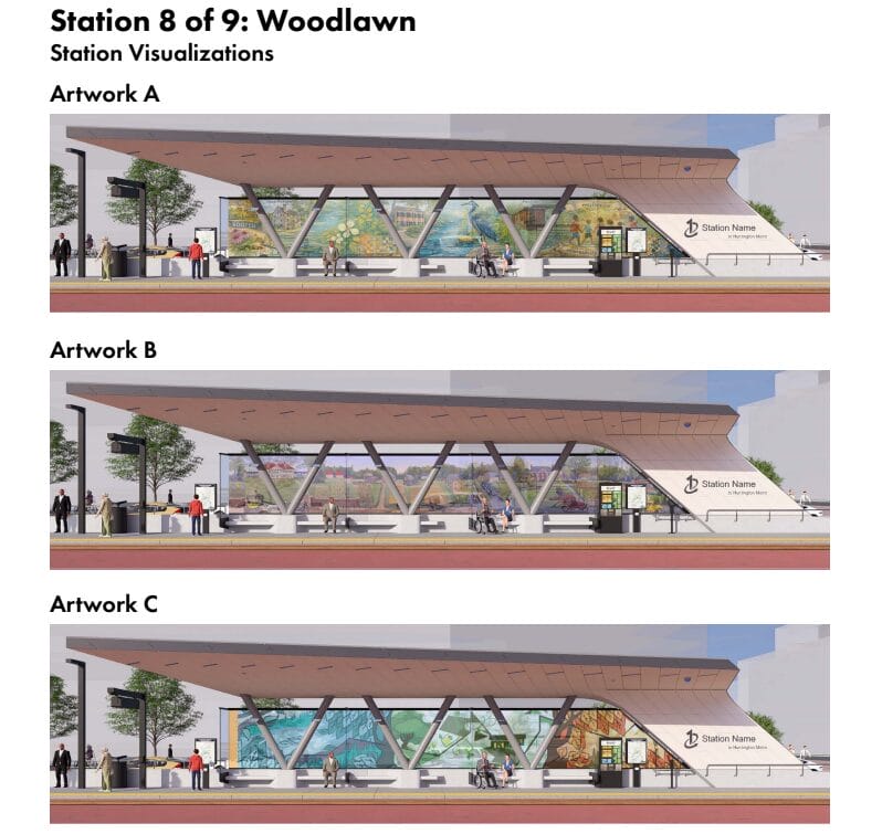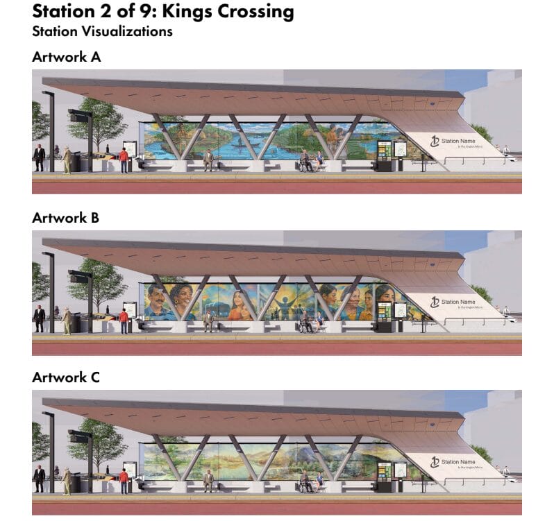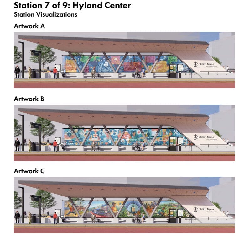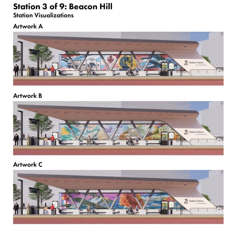 Solicited from both professional and student artists as part of a “Community Charm” initiative, the concepts all “reflect the history, identity and character of the neighborhoods surrounding each station area,” FCDOT said in an April 7 press release.