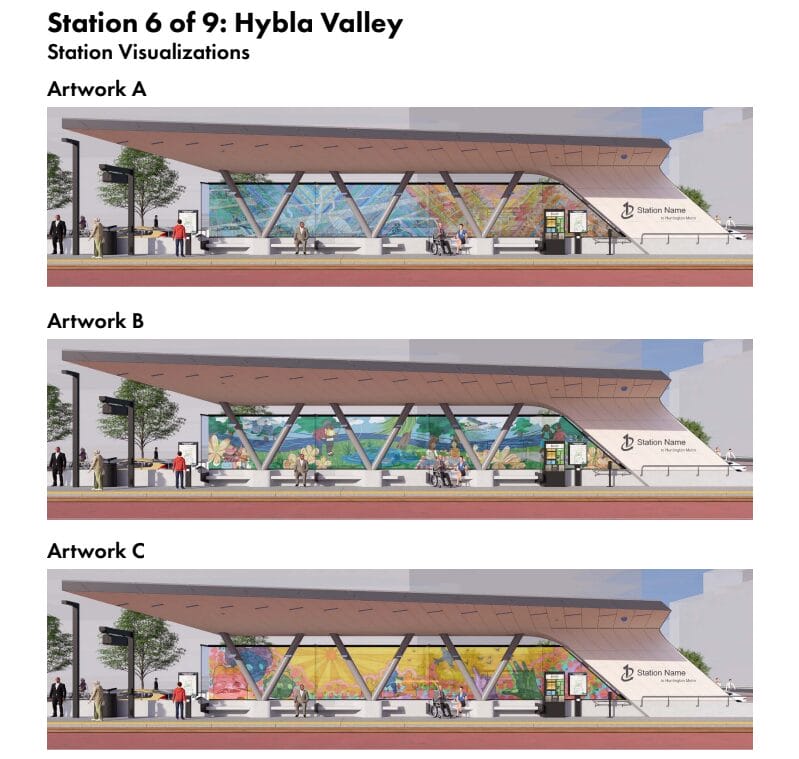 For the Beacon Hill station, artists nod to the area’s ties to aviation as the former home of the Hybla Valley and Beacon Field airports, while the Lockheed station designs follow a nature theme that reflects its proximity to Huntley Meadows Park.