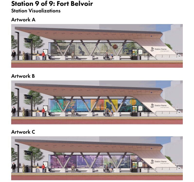 Earlier this week, the Fairfax County Department of Transportation (FCDOT) launched a survey that asks community members to rank three different windscreen designs proposed for each of the bus service’s nine planned stations.