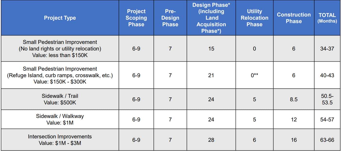 Sidewalk improvements, minor pedestrian upgrades and intersection improvements were the types of projects under discussion. The hour-long presentation focused on various project parts: scoping, pre-design, design, land acquisition, utility relocation, and finally, construction.