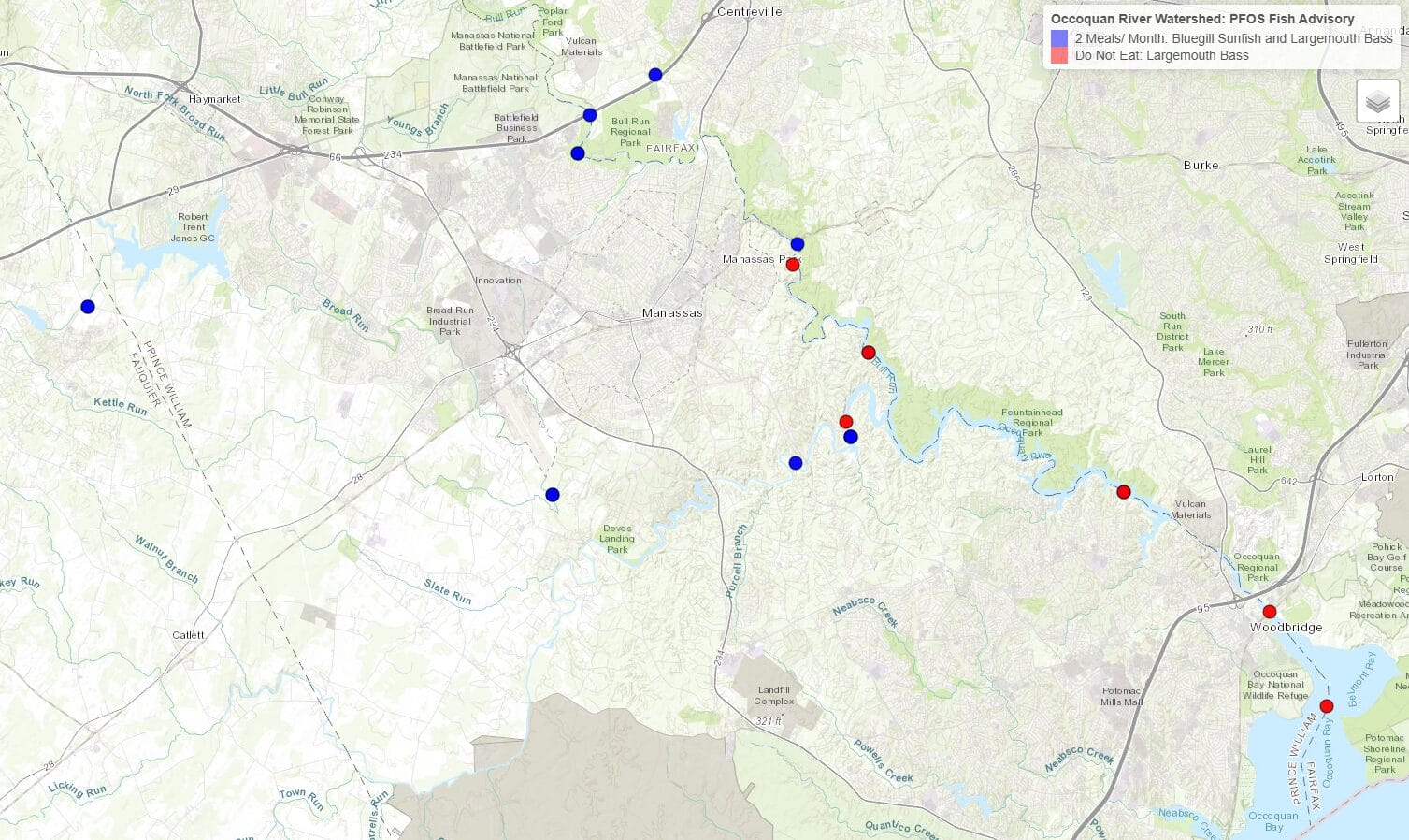 Accordingly, residents are encouraged to limit their consumption of the species that have been recently caught from the Occoquan Reservoir, Broad Run, Bull Run and other connected tributaries.