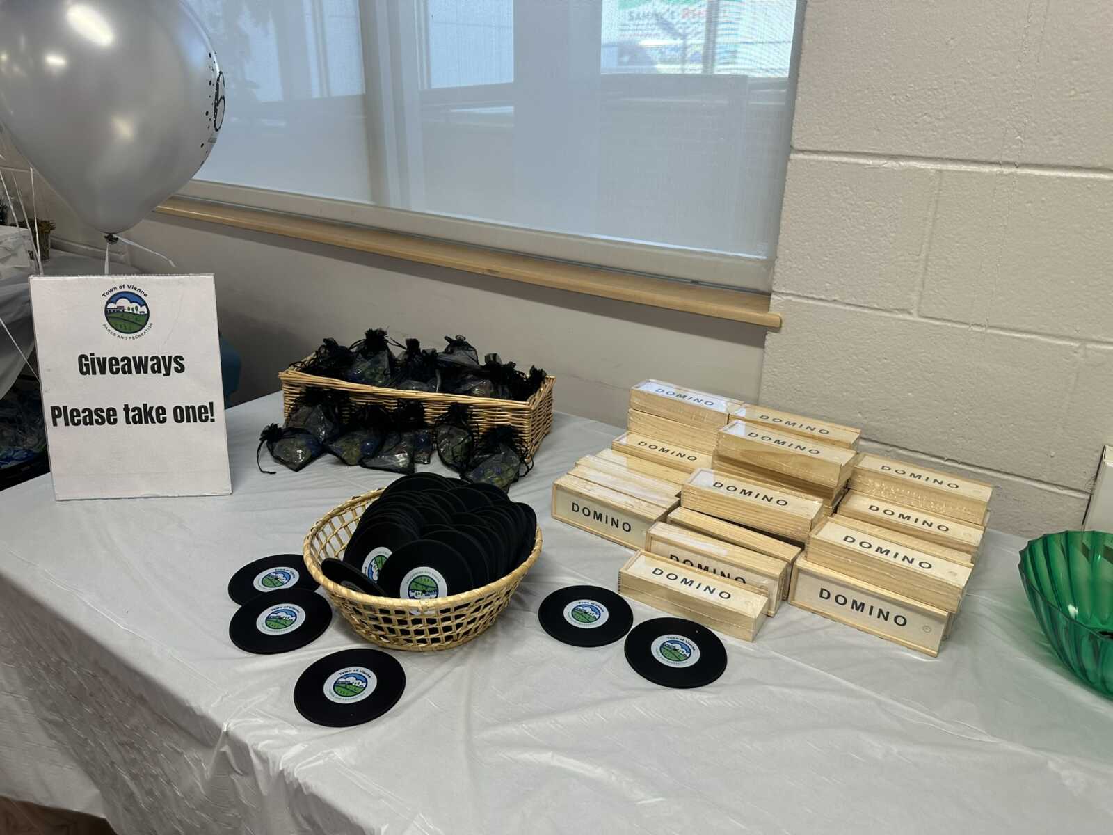 On the other side of the room, a table offered up 1960s-era candy like Sweet Tarts, Chuckles and 100 Grand chocolate bars, provided for free by the local food assistance nonprofit One Neighborhood Foundation. Non-edible throwback giveaways were available as well, including dominos, bags of marbles and coasters resembling vinyl records.