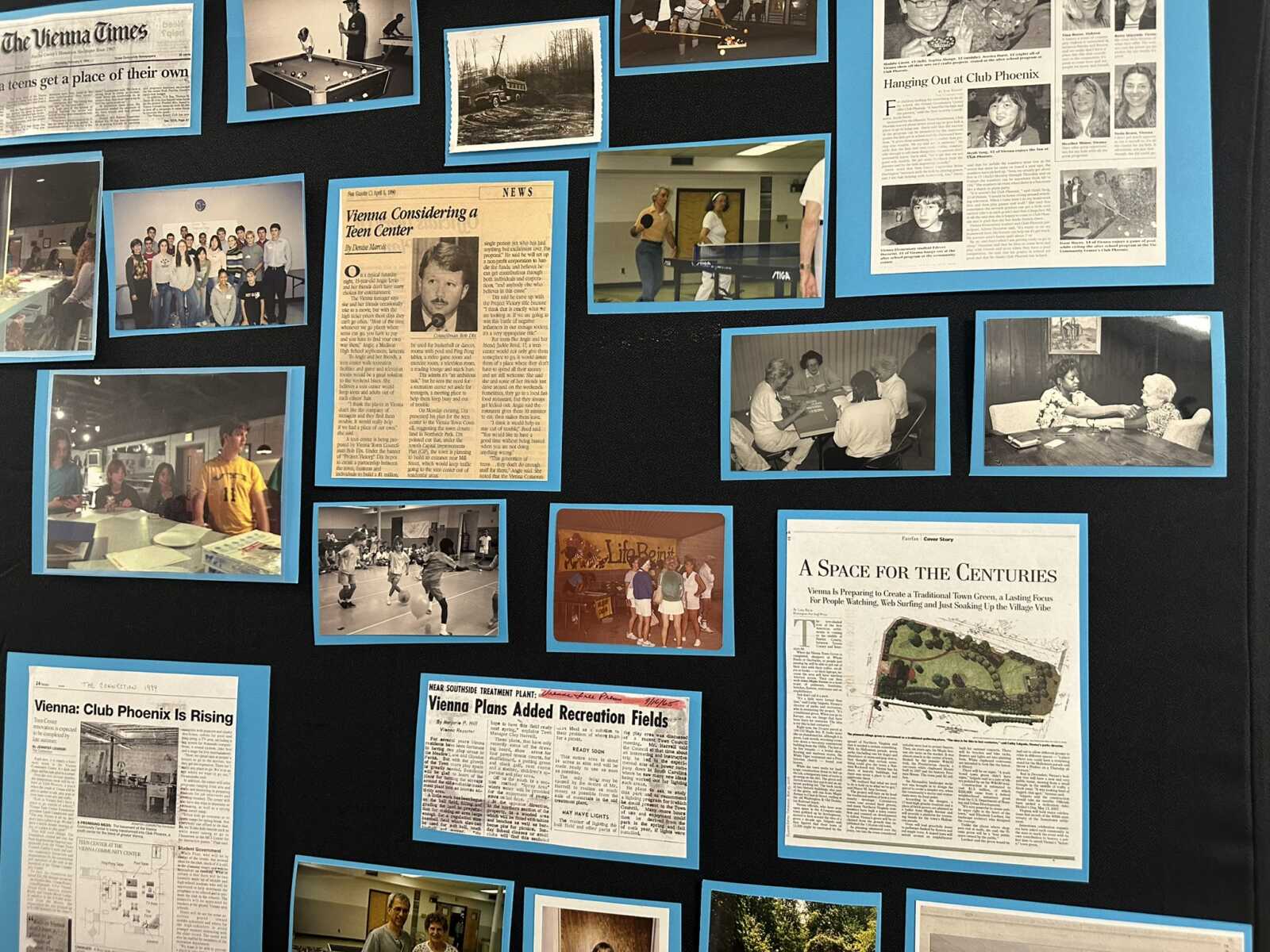 For an open house to celebrate the facility’s 60th anniversary, the Town of Vienna’s Parks and Recreation Department set up displays on one side of the room covered with nostalgia-triggering newspaper clippings and photographs, many of them provided by local residents.