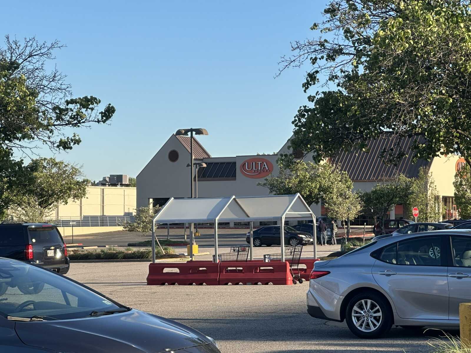 A shopping cart corral in the parking lot of Fair City Mall in Fairfax City (staff photo by Angela Woolsey)