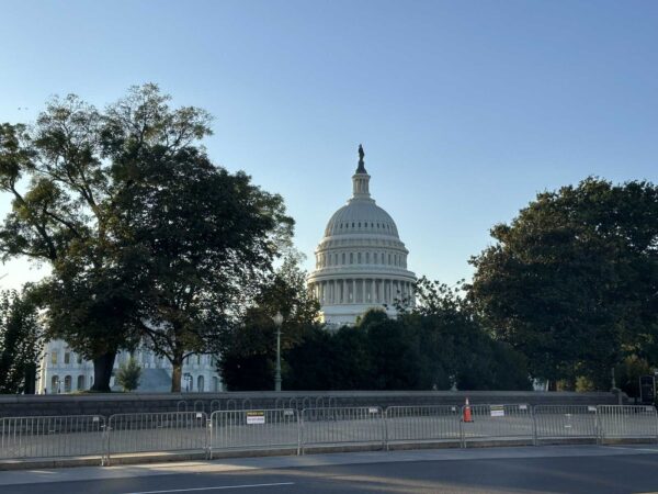 Fencing lines a street near the U.S. Capitol in D.C. (staff photo by Angela Woolsey)