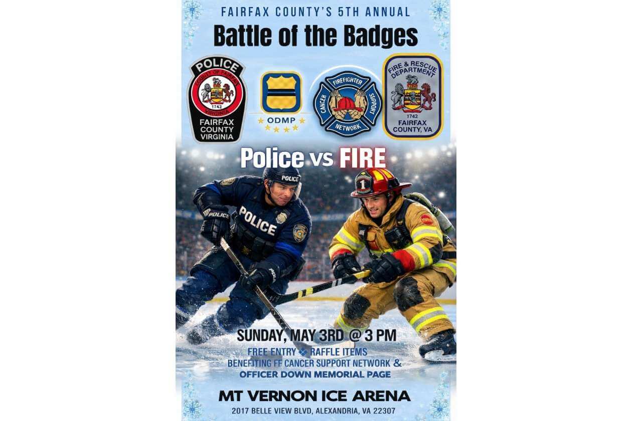Join us on Sunday, May 3rd, 3 PM, at the MT Vernon Ice Area for the 5th annual Fairfax Fire vs Police Hockey Game. This year we are skating for two great charities, the Firefighter Cancer Support Network AND the Officer Down Memorial Page.