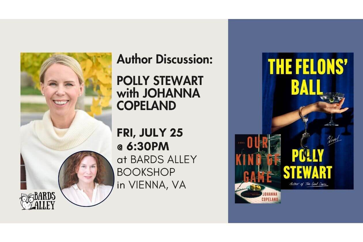 Join the Bards Alley booksellers as we welcome author Polly Stewart for a celebration of her new novel “The Felons’ Ball”! She will be in conversation with D.C. author Johanna Copeland, whose acclaimed psychological thriller “Our Kind of Game” is now in paperback.