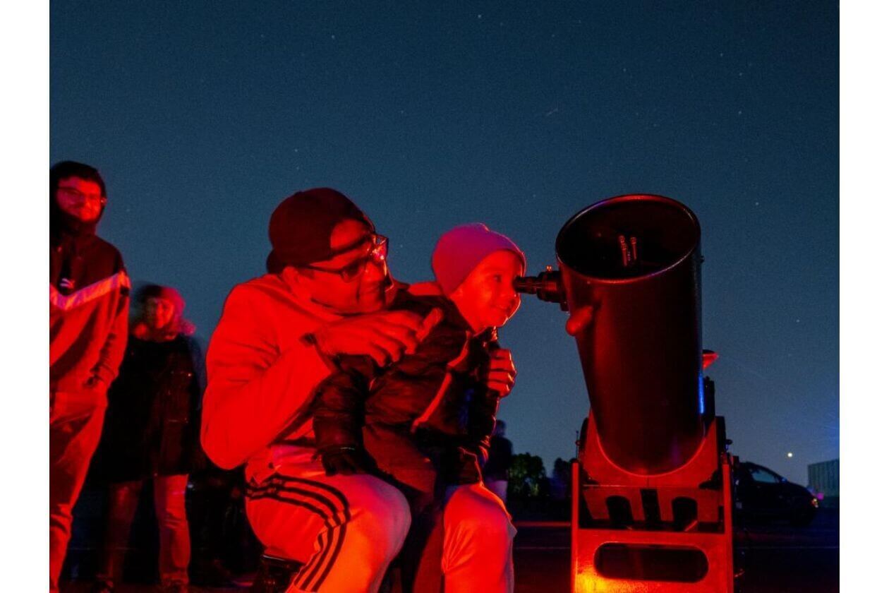 Stargazing is located in the bus lot at the south end of the Museum’s parking lot. Look for red lanterns to help guide you to the telescopes.