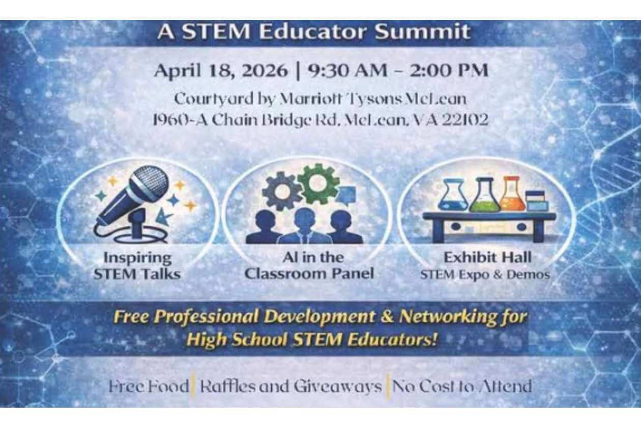 The Center for Excellence in Education (CEE), Co-Sponsored by the Claude Moore Charitable Foundation, will host “Inspiring the Next Generation: A STEM Educator Summit” on Saturday, April 18, 2026, from 9:30 a.m. to 2 p.m. at the Courtyard Marriott Tyson’s Corner located at 1960-A Chain Bridge Road, McLean, Virginia. This exciting event will offer free professional development and networking for high school STEM educators.