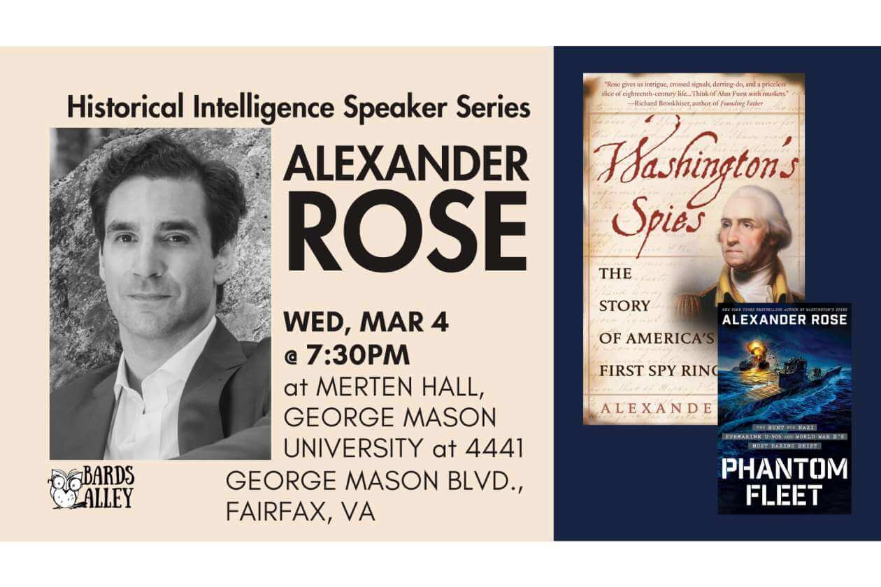 Rose’s book “Washington’s Spies: The Story of America’s First Spy Ring” inspired the AMC television series “TURN: Washington’s Spies.” He will tell the story of George Washington’s personal intelligence network, the Culper Ring, at a moment of heightened interest in Revolutionary War history as Americans commemorate the 250th anniversary of our nation’s founding.