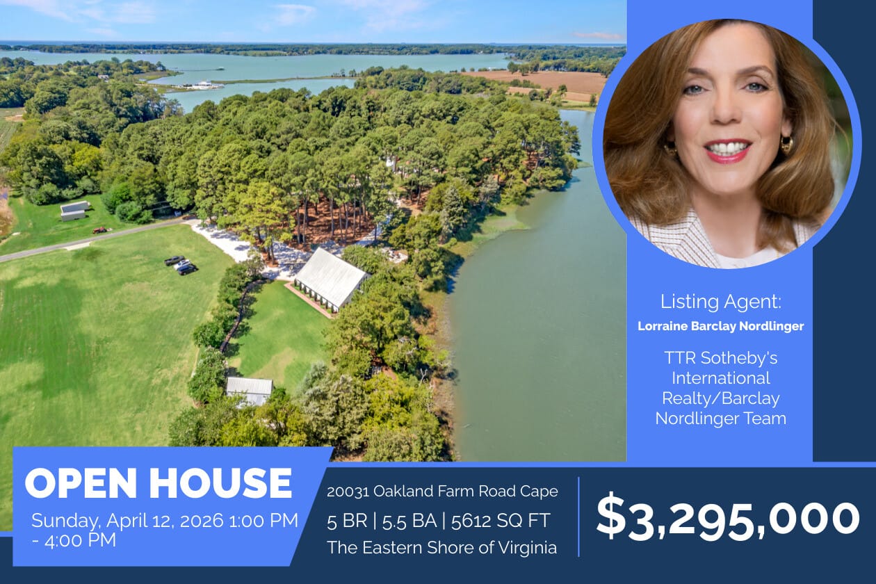 Address:20031 Oakland Farm Road Cape Neighborhood: The Eastern Shore of Virginia (Cape Charles, Virginia) Type: 5 BR, 5 (+3 half) BA waterfront, restored, historic, estate with main house, carriage house and barn/event space waterfront historic estate – 5612 sq. ft. Listed: $3,295,000