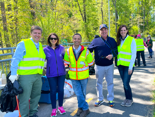 Hunter Mill District Supervisor Walter Alcorn with Tysons Forest Task Force Chair Jack Russell and other members for a cleanup event in 2025 (courtesy Hunter Mill District Office)