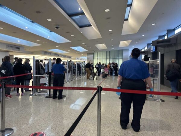 A security screening area at Dulles International Airport in April 2025 (staff photo by Angela Woolsey)
